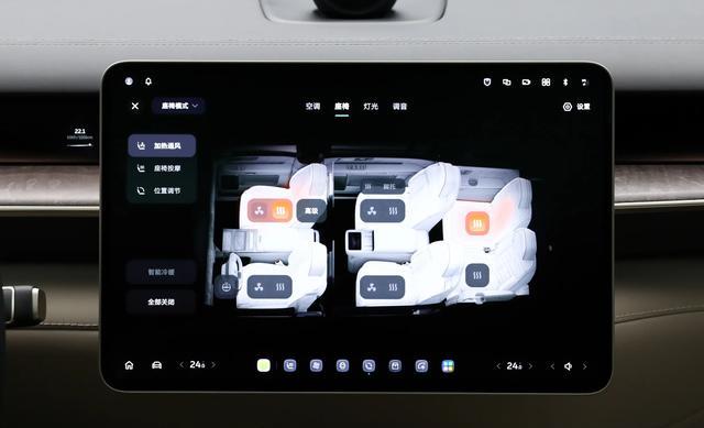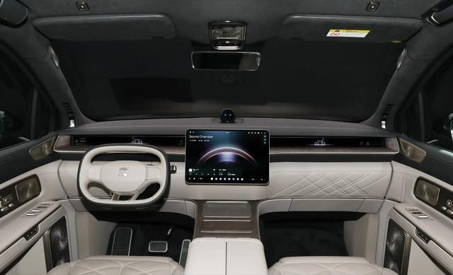蔚来ES9内饰有着不错的氛围感和质感,方向盘采用椭圆形设计,中控屏幕的尺寸为15.6英寸,车机芯片为高通骁龙8295,座椅采用Nappa真皮材质,布局方式为2+2+2,全系车型还标配47个扬声器,音响最大输出功率为4630W,后排屏幕的尺寸为双16+8英寸。